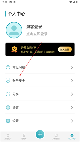 2、進入個人中心頁面后,點擊賬號安全選項。