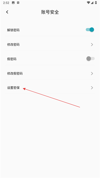 3、進入賬號安全頁面后,點擊設(shè)置密保選項。