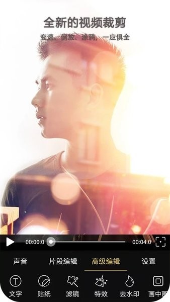 【視頻編輯】片段編輯、剪裁、分割、快放、慢放、旋轉(zhuǎn)縮放、視頻合并、馬賽克、去水印、倒放、壓縮、復(fù)制、橫屏大片、豎屏手機(jī)、方塊小視頻、多種參數(shù)調(diào)節(jié),實(shí)現(xiàn)視頻特效