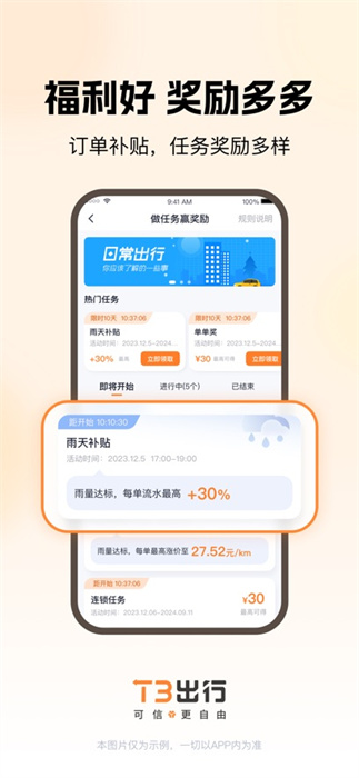 t3出行是南京領(lǐng)行科技股份有限公司打造的智慧出行生態(tài)平臺(tái),以“成為最值得信賴的出行服務(wù)企業(yè)”為愿景,“科技引領(lǐng) 愉悅出行”為使命。平臺(tái)所有出行車輛均為自營,高度定制、高標(biāo)準(zhǔn)車輛,專為網(wǎng)約車開發(fā)的車聯(lián)網(wǎng)安全系統(tǒng)、進(jìn)行車輛統(tǒng)一管理,為用戶提供“安全、便捷、品質(zhì)”的出行服務(wù)。