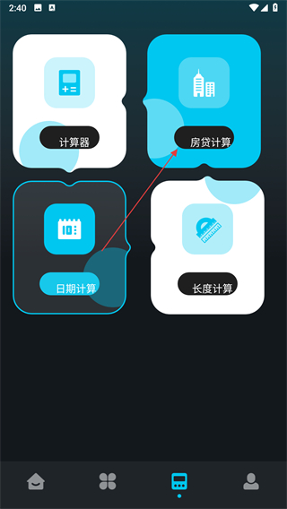 2、在功能頁面中,點(diǎn)擊房貸計(jì)算選項(xiàng)。