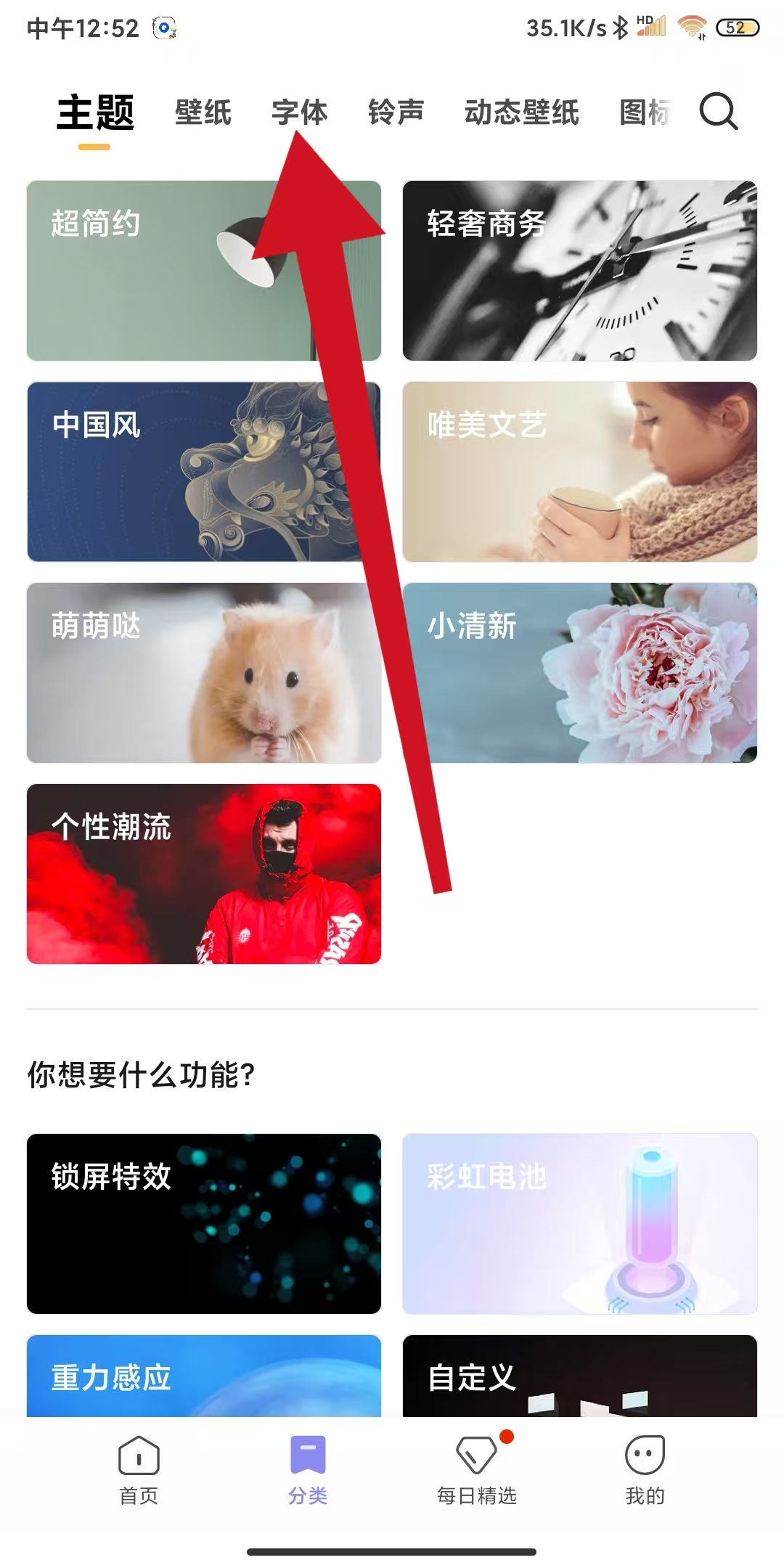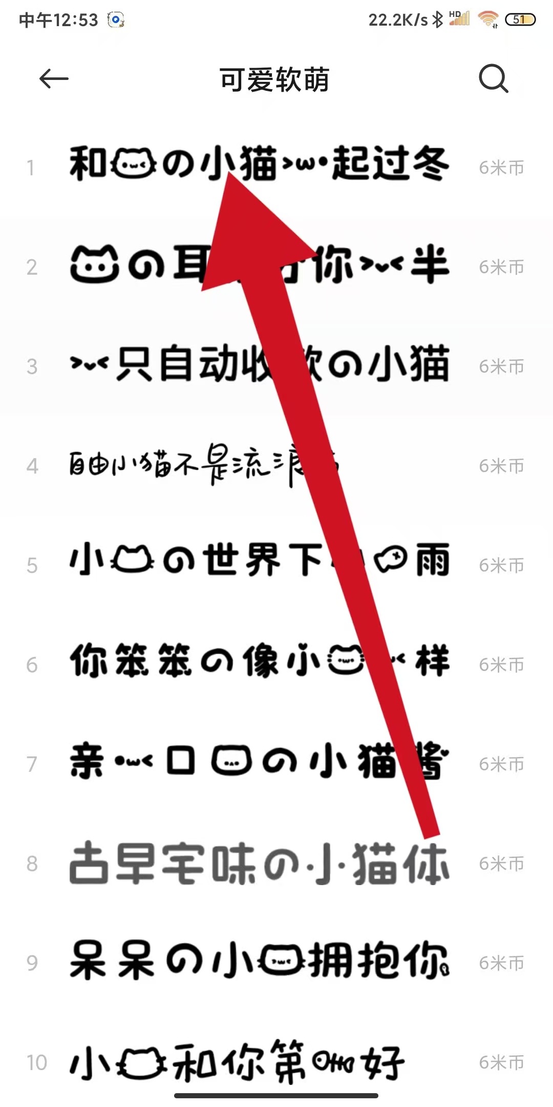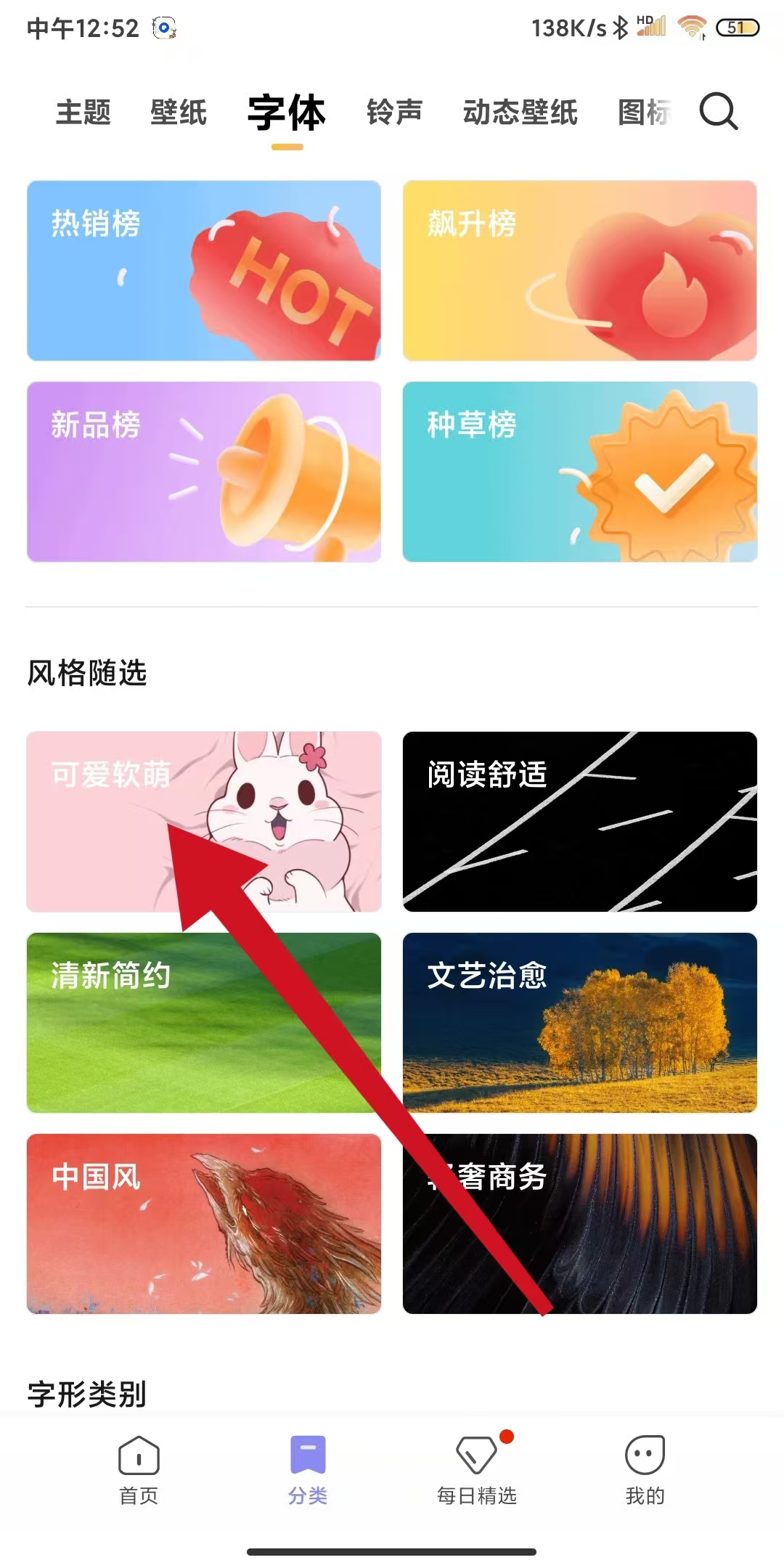 3、在字體頁面里,有各類榜單和風(fēng)格分類,比如點擊風(fēng)格隨選中的可愛軟萌。