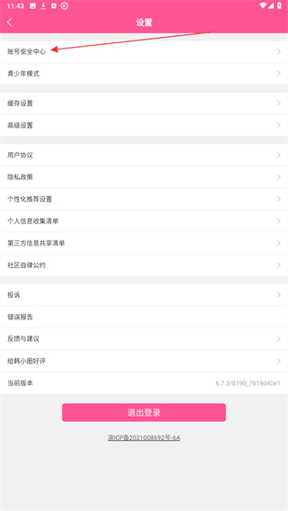 3、進(jìn)入設(shè)置的頁(yè)面內(nèi),點(diǎn)擊上方賬號(hào)安全中心的功能按鈕。