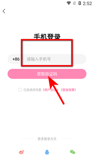 3、在登錄界面,輸入手機(jī)號(hào)后點(diǎn)擊獲取驗(yàn)證碼,進(jìn)入驗(yàn)證碼輸入頁(yè)面。