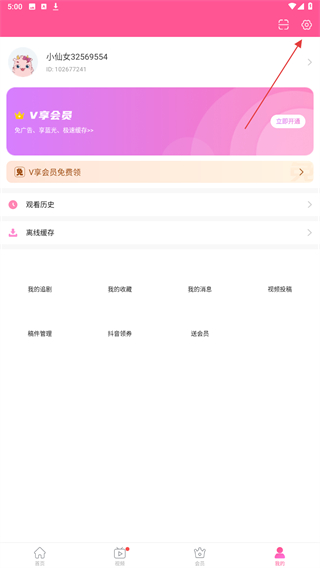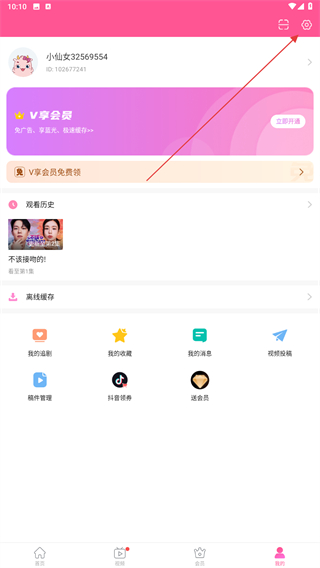 2、在我的頁(yè)面內(nèi),用戶需點(diǎn)擊右上角齒輪狀的設(shè)置圖標(biāo)。