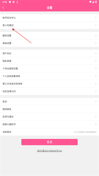 3、在設(shè)置的頁(yè)面內(nèi),點(diǎn)擊青少年模式的功能按鈕。