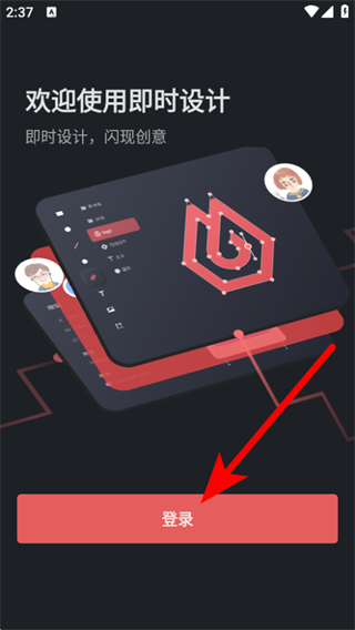 1、打開即時設(shè)計APP,我們需要點擊登錄的按鈕,進入登錄頁面。