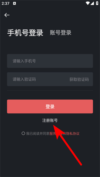 2、在登錄的頁面,我們需要點擊注冊賬號,進入注冊選擇頁面。