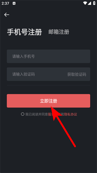 3、我們這里選擇手機號注冊,輸入手機號和驗證碼后,點擊立即注冊。