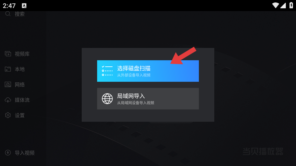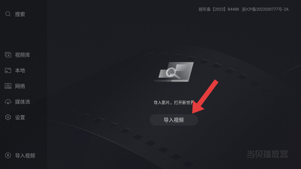 1、在當貝播放器主界面,點擊導(dǎo)入視頻按鈕,開啟視頻導(dǎo)入流程。