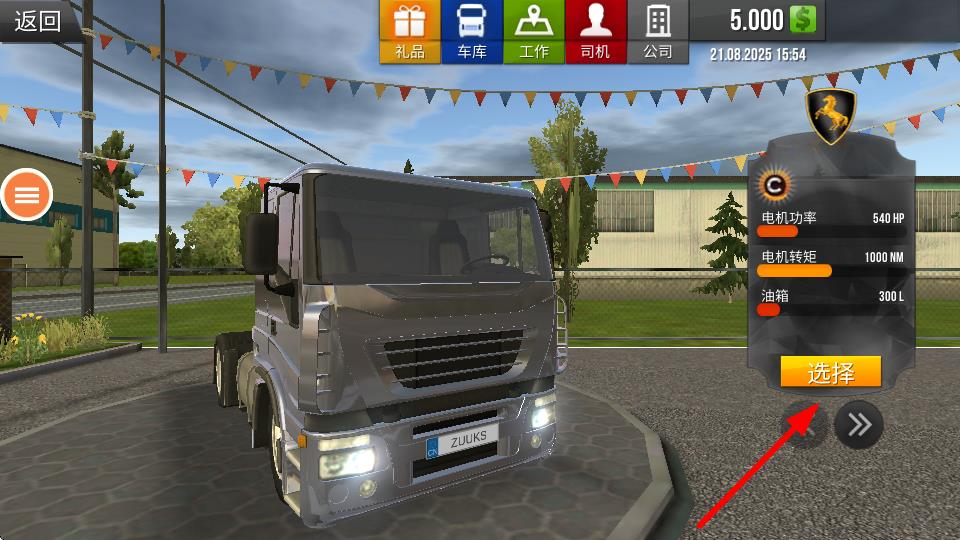 3、在車庫中瀏覽車輛時,找到心儀的車輛后,確認車輛符合需求后點擊選擇按鈕就能將所選車輛更換為當(dāng)前駕駛車輛。
