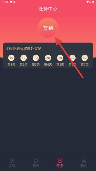 2、在任務中心內(nèi)可以進行簽到,連續(xù)簽到可以獲取額外的獎勵,越到后面獎勵就越豐富。