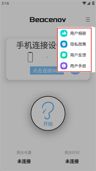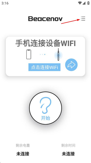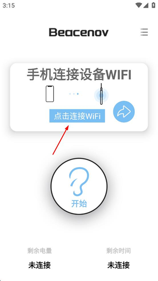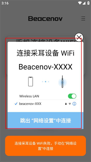 1、點(diǎn)擊連接WiFi,按提示連接采耳設(shè)備WiFiBeacenov-XXXX。