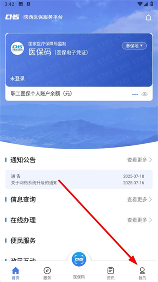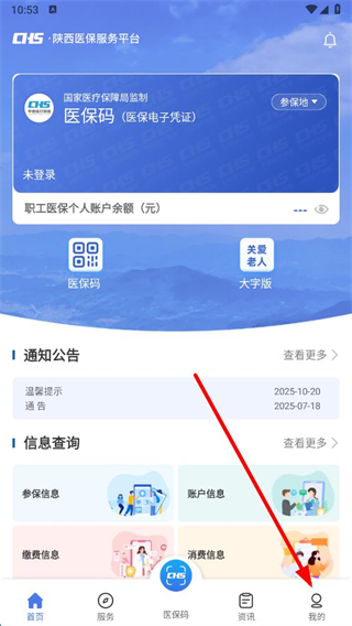 1、打開陜西醫(yī)保app,點(diǎn)擊右下角我的選項(xiàng),進(jìn)入登錄頁面。