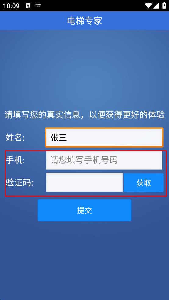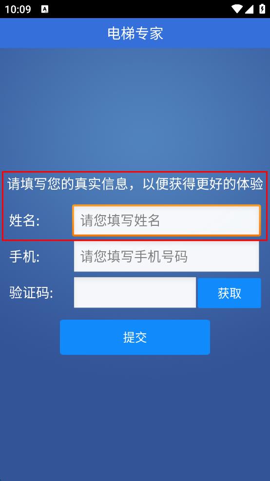 2、進(jìn)入信息填寫(xiě)頁(yè)面,填寫(xiě)姓名。