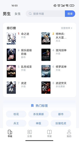 2、在書城界面,選擇想要閱讀的書籍,點擊進入書籍詳情頁面。