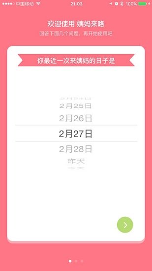 1、打開(kāi)姨媽來(lái)咯APP,左滑到中間的頁(yè)面。