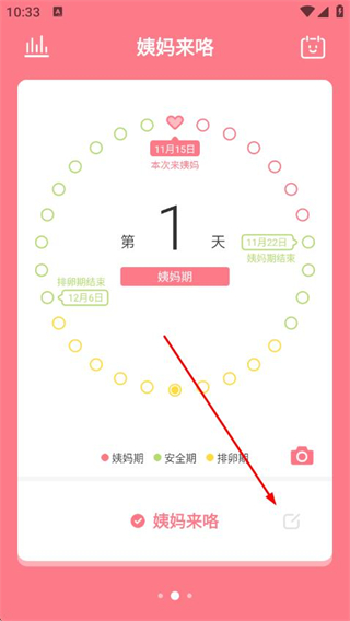 2、在姨媽來(lái)咯頁(yè)面,點(diǎn)擊右下角的編輯圖標(biāo)。