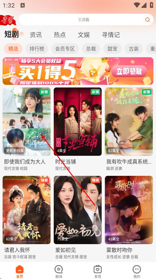 2、在首頁選擇想要觀看的短劇,比如即使我們成為大人,點擊進(jìn)入播放頁面。