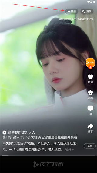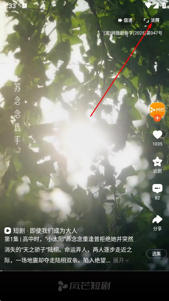 3、在短劇播放頁面,點擊右上角的清屏按鈕。