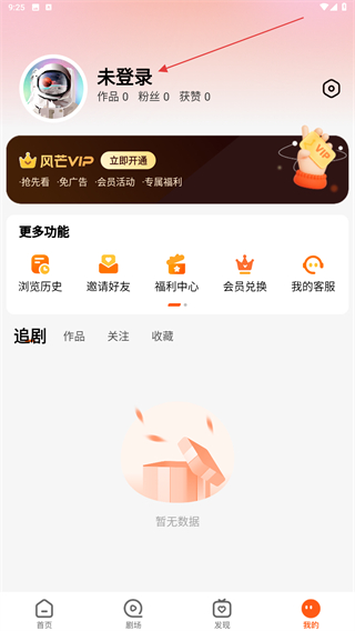 2、進(jìn)入個人主頁內(nèi),點擊上方未登錄的區(qū)域位置。