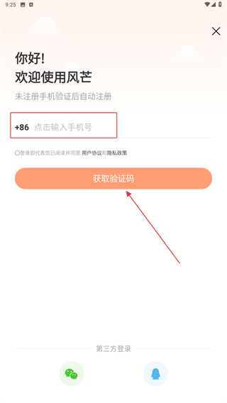 3、進(jìn)入登錄的界面內(nèi),輸入手機(jī)號點擊獲取驗證碼。