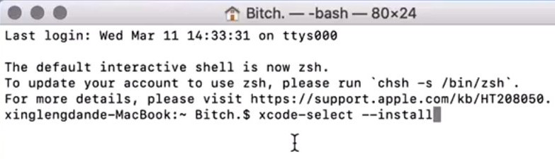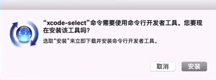 在終端上輸入:xcode-select --install(為避免出錯,建議直接復制此命令并粘貼到終端工具)后按回車,安裝命令行工具。
