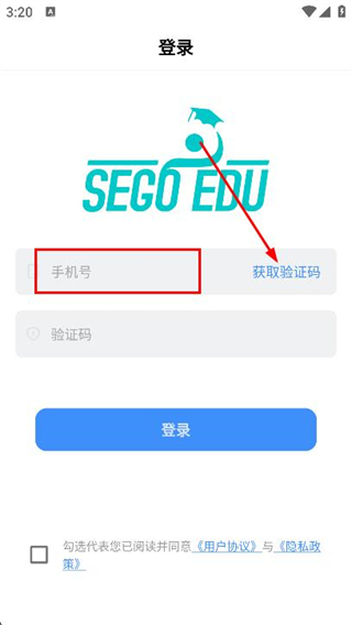 3、在登錄頁面的輸入框中,填寫手機號并獲取驗證碼。