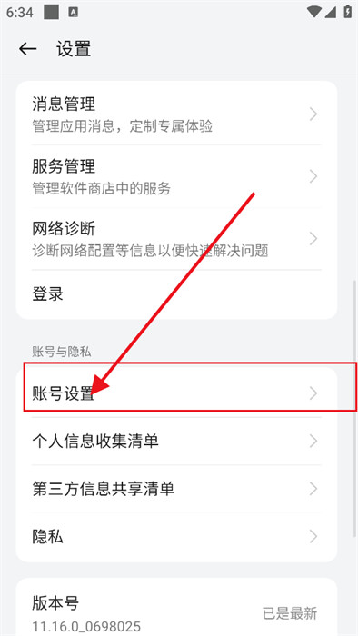 4、接著,向下滑動,找到【賬號管理】,并點擊進(jìn)入平臺;