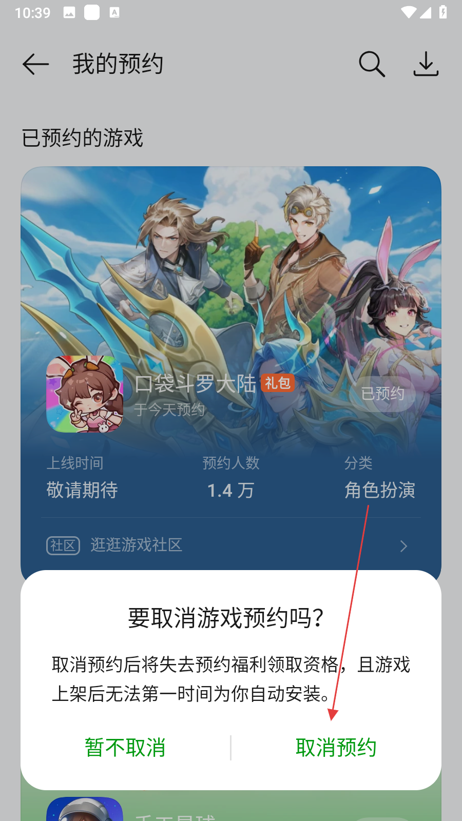 3、在我的預(yù)約頁面,找到想要取消預(yù)約的游戲,點擊該游戲,在彈出的確認(rèn)提示框中,點擊取消預(yù)約按鈕,即可成功取消對該游戲的預(yù)約。