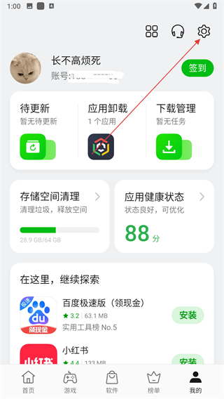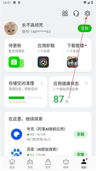 1、打開OPPO軟件商店,進(jìn)入我的頁面后點擊設(shè)置。