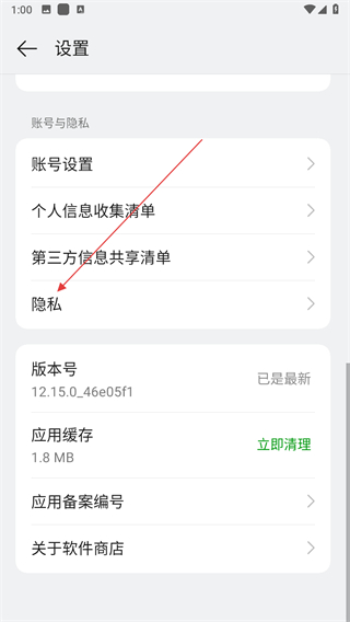 2、在設(shè)置頁面,點擊隱私選項,即可進(jìn)入隱私頁面。