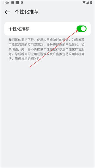 4、關(guān)閉個性化推薦開關(guān),即可關(guān)閉該功能。