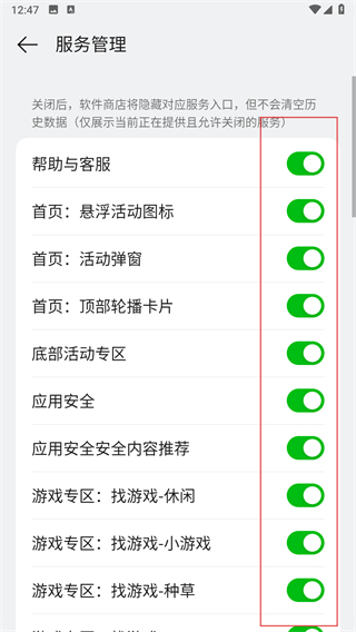 4、找到想要關(guān)閉的對應(yīng)服務(wù)入口,點擊目標(biāo)服務(wù)入口對應(yīng)的開關(guān)。