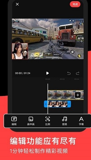 2.畫中畫功能,錄制面部反應(yīng),解說與視頻同步播放,增添視頻樂趣。