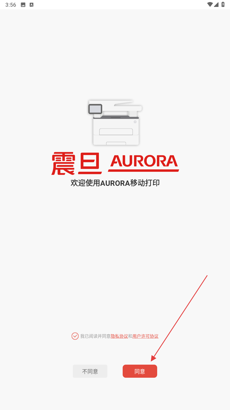 1、打開震旦打印機APP,進入時勾選我已同意隱私政策后,再點擊同意的按鈕。