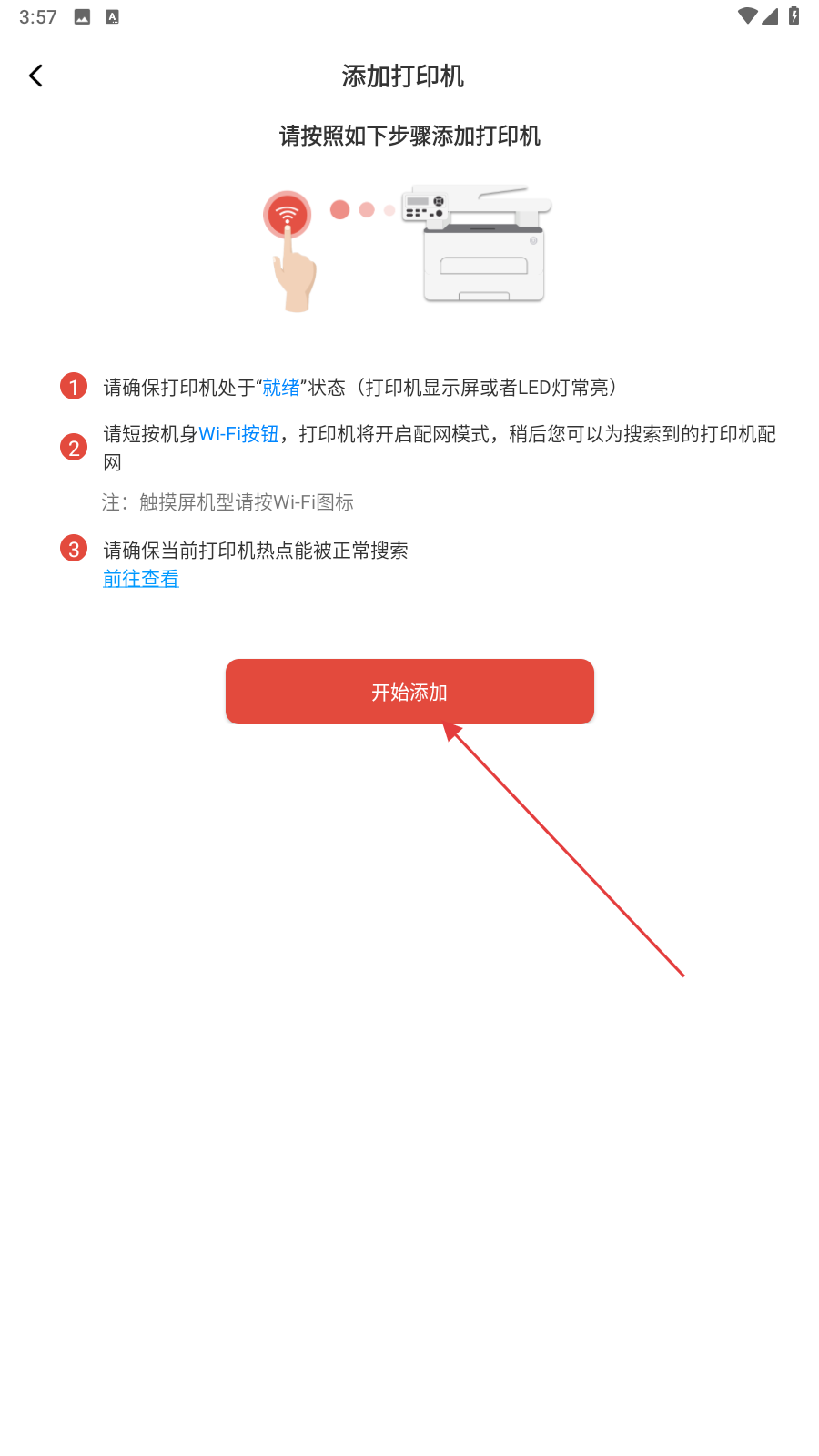 3、在添加打印機的頁面內(nèi),點擊開始添加的按鈕。