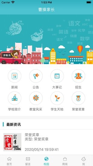 校園板塊,家長可以及時獲知學校的各項狀況,如同親臨其境;