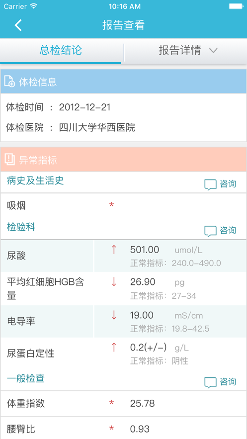 通過(guò)app登錄后,可以查看到用戶在華西的歷年體檢報(bào)告,也可以通過(guò)app獲得最新的體檢報(bào)告,徹底告別親自到醫(yī)院領(lǐng)取的煩惱。