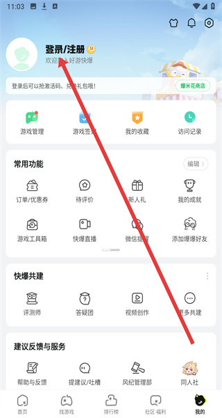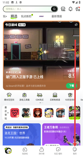 1、在進入到好游好爆首頁中,可以點擊首頁下我的按鈕,進入我的主頁。