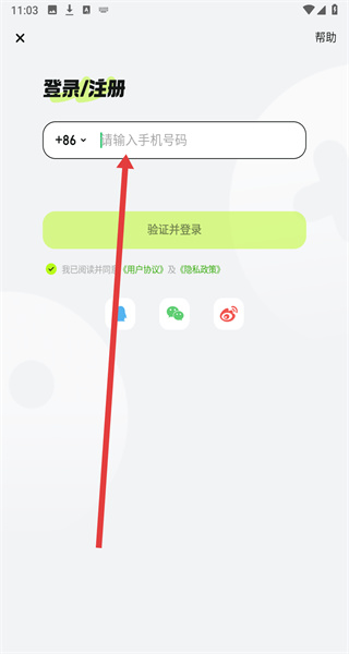 3、在進入到登錄頁面后,可以點擊輸入框填寫手機號碼,進行獲取驗證碼登錄。