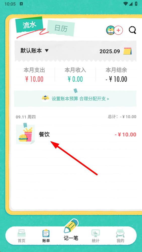 2、在賬單界面中,找到需要刪除的賬單記錄,比如餐飲消費記錄,點擊進(jìn)入該賬單詳情頁。