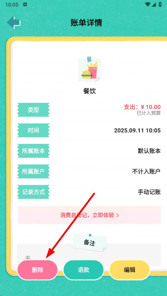 3、在賬單詳情頁面,找到并點擊下方的刪除按鈕。