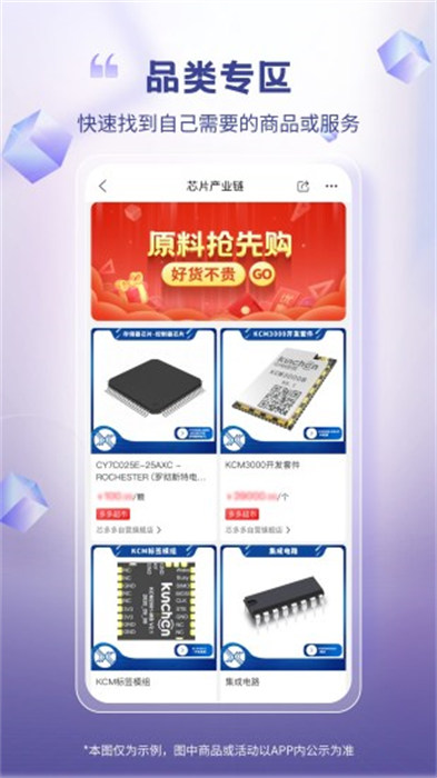 芯多多官方正版是一款全新的綜合性線上芯片電商平臺,在應(yīng)用中,關(guān)于各種的芯片產(chǎn)業(yè)中各個環(huán)節(jié)和終端的儀器,在應(yīng)用中都能夠?qū)ふ业?用戶可以根據(jù)自己的需求按需購買,應(yīng)用功能強大,頁面布局簡單清楚,各個版塊的分類也是非常明確的,有需要的用戶千萬不要錯過,快來下載體驗吧!
