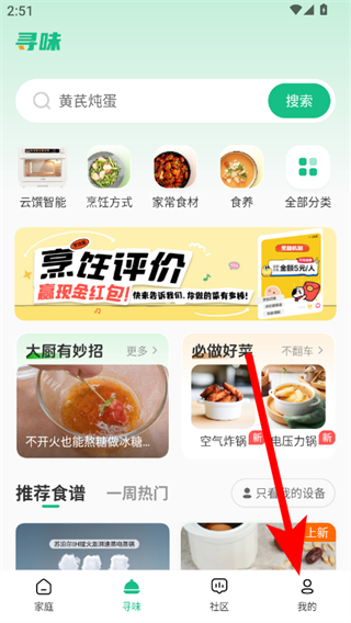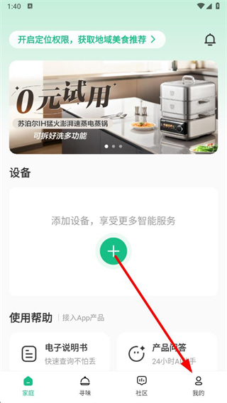 1、在蘇泊爾app尋味頁面,點擊右下角我的選項,進(jìn)入個人中心界面。