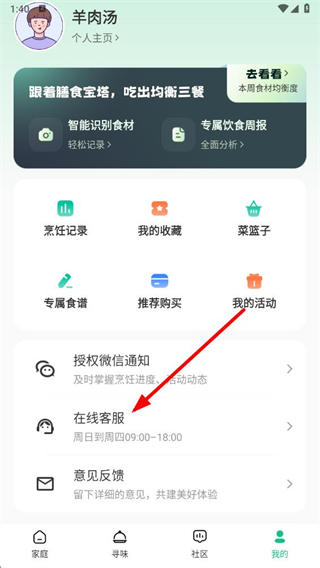 2、在個人頁面下方,找到并點擊在線客服選項。