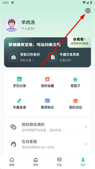 2、在個人頁面中,點擊右上角的設(shè)置圖標(biāo),進(jìn)入設(shè)置界面。