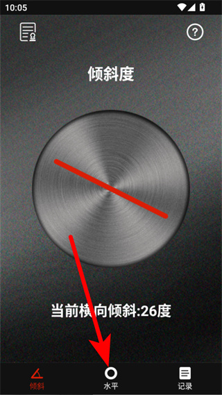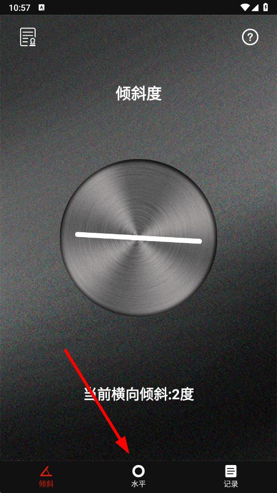 1、打開水平儀器APP,點擊底部的水平選項,進入水平度測量頁面。