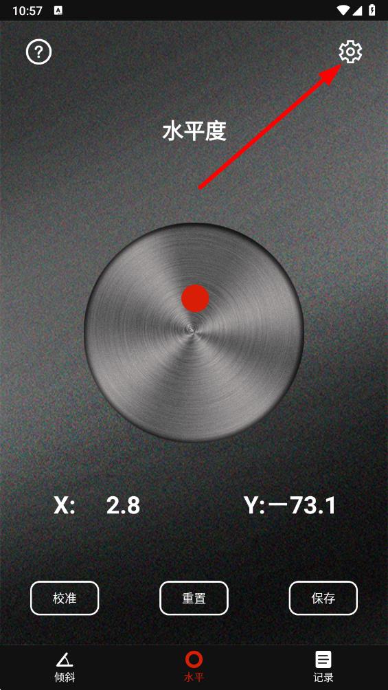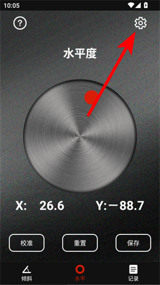 2、在水平度測量界面中,點擊右上角的設置圖標,進入設置頁面。