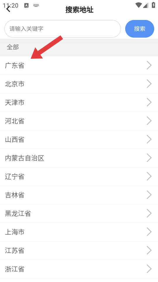 3、在搜索地址界面,可通過搜索關(guān)鍵詞,或直接點擊目標(biāo)省份,選擇要關(guān)注的具體地點。